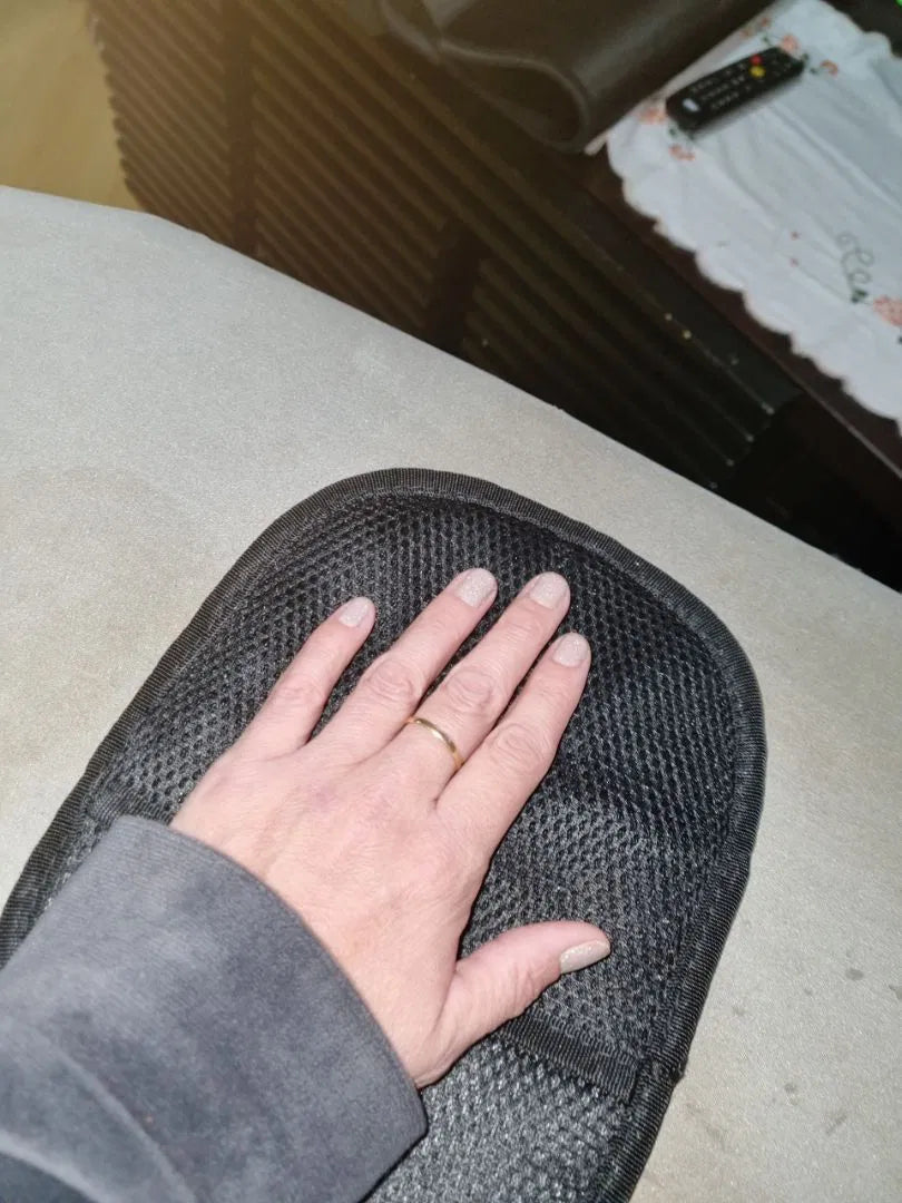 "My two cats have declared war on my couch. This glove is my only defense. It picks up hair way better than any lint roller I've tried, and I don't have to keep buying refills."